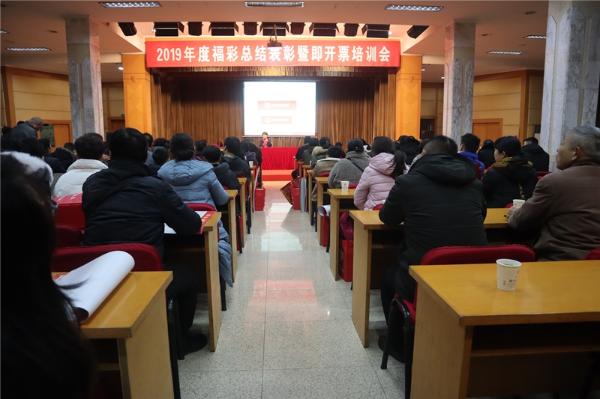 1月22日上午,淮北福彩中心召开2019年度福彩总结表彰暨即开票培训会,会议表彰了2019年度优秀站点,并对站点做了培训,全市136名福彩站点业主参加会议。