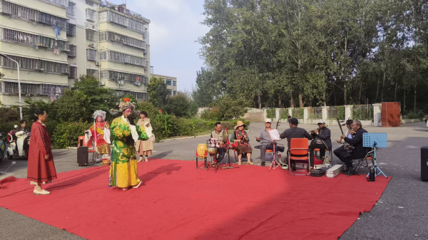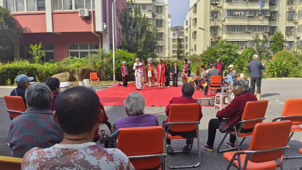演出在歌曲《让神州大地国泰民安》中拉开帷幕。随后,大合唱《没有共产党就没有新中国》响起,现场的老人们纷纷融入其中,他们用真挚的歌声传递着爱与温暖,向伟大的中国共产党致以崇高的敬意和诚挚的感激之情。紧接着,独唱《红梅赞》《南泥湾》等一系列风格各异的经典曲目接连唱响,熟悉的旋律唤起了老人们对往昔岁月的美好回忆,不少老人轻声跟唱,现场气氛温馨而融洽。最受欢迎的当属戏曲演出,《朝阳沟》《天仙配》《铡美案》等戏曲选段轮番登场,演员们以饱满的热情和精湛的演技,将传统戏剧曲艺展现得淋漓尽致,不时赢得阵阵掌声,让老人们过足了戏瘾。夕阳西下,活动在《夕阳红》的合唱声中圆满结束。