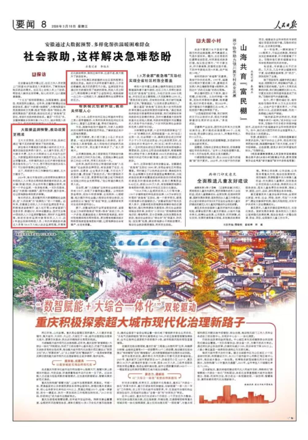 《人民日报》刊发《安徽通过大数据预警、多样化帮扶温暖困难群众社会救助,这样解决急难愁盼(探访)》