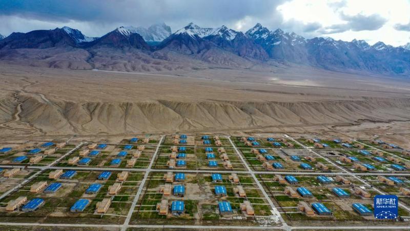 这是在新疆塔什库尔干塔吉克自治县县城附近拍摄的塔提库力易地扶贫搬迁安置点(2019年7月1日摄,无人机照片)。新华社记者 胡虎虎 摄