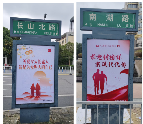 路名牌作为城市公共基础设施,人车流密集,关注度高,借助这一载体开展敬老宣传,能够直接、广泛地将尊老敬老的观念传递给每一位过往的市民,让敬老文化在人们不经意间的驻足与观望中入眼入心,引导全社会共同关心和帮助老年人,进一步弘扬孝亲敬老的优良传统。