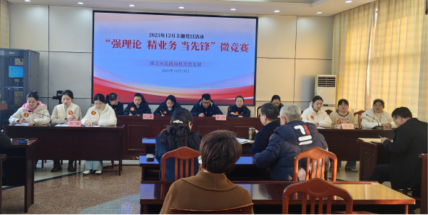 为深入学习贯彻党的创新理论,巩固拓展主题教育成果,推动理论学习走深走实,12月19日,市民政局机关党支部成功举办12月主题党日暨“强理论、精业务、当先锋”微竞赛活动。局机关全体工作人员齐聚一堂,以赛促学、以学促干,共同掀起一场理论与业务的“大练兵”。
