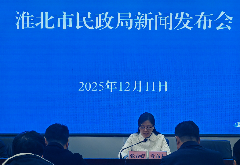 2025年12月11日下午16点30分,淮北市民政局在市民政局第一会议室召开2025年社会救助工作专题新闻发布会,此次发布会主题为《2025年淮北市社会救助工作开展情况》,会议邀请安徽日报、安徽经济报、安徽法治报和淮北市传媒中心记者参加,局党组成员、副局长张春媛现场介绍并答记者问。